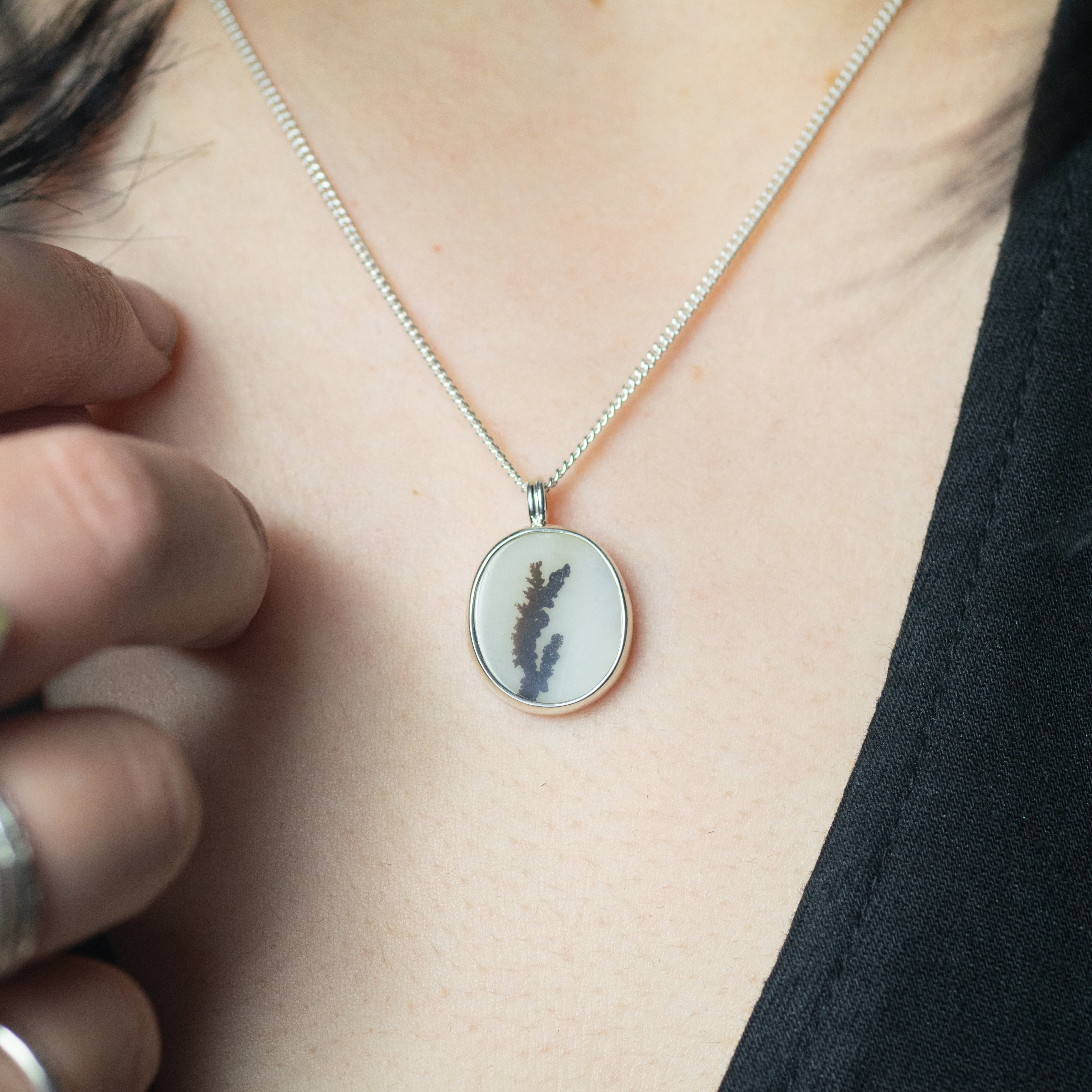 Made from recycled sterling silver and set with a natural dendritic agate.