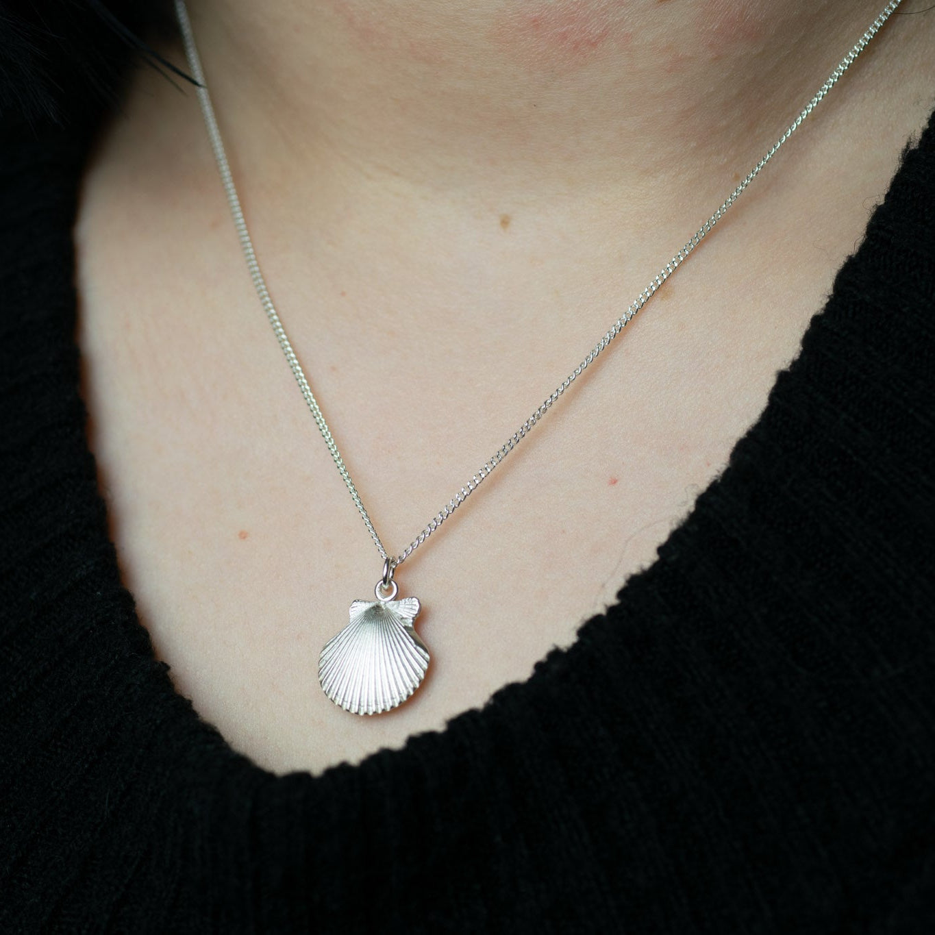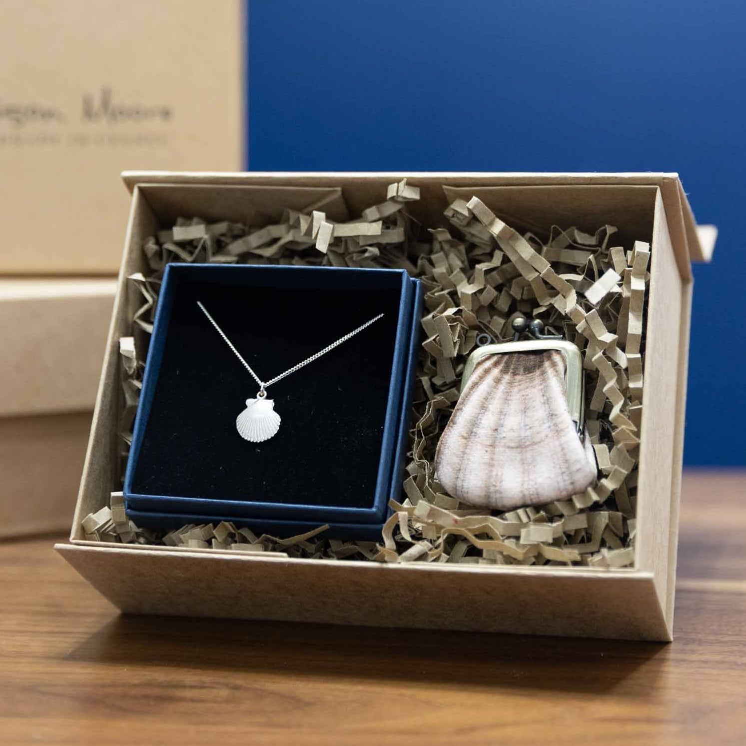 We’ve paired our elegant sterling silver Scallop pendant with a stunning handmade velvet shell purse lined with rich indigo silk and crafted in Scotland by Rowena of Red Ruby Rose. It’s a beautiful little piece to keep your most treasured things safe.