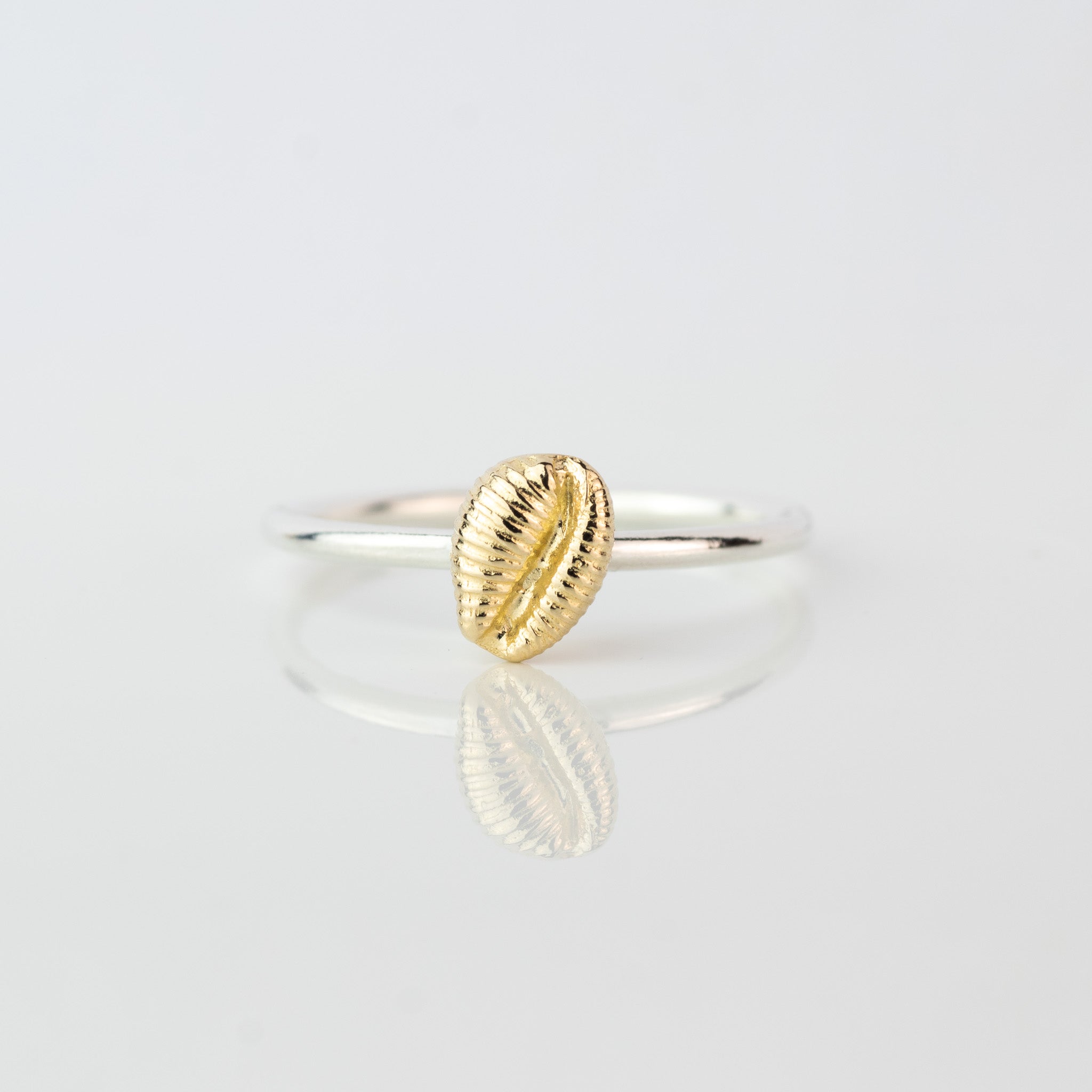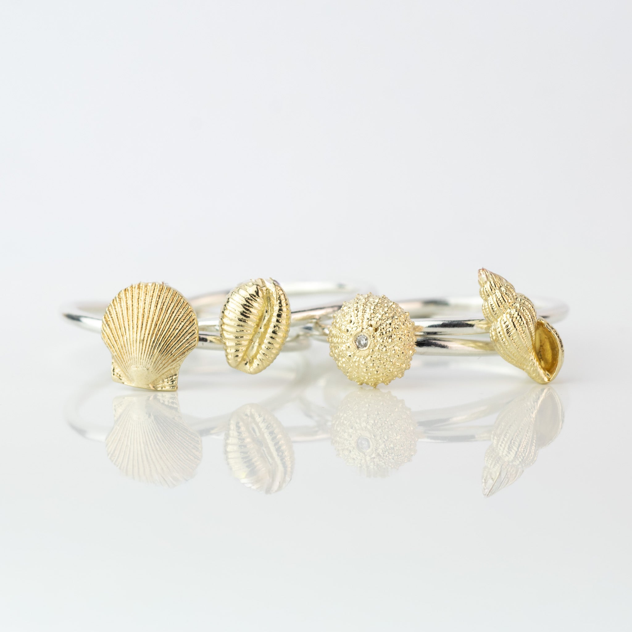 Crafted from recycled solid 9ct gold and sterling silver, our mini groatie buckie stacking ring (inspired by the cowrie shell) brings a splash of seaside charm to the Rockpool collection. It’s the perfect treat for anyone dreaming of ocean breezes and sandy toes. Stack it up with our Nebula and Andromeda gemstone rings, or mix it with other shell designs to create your own playful statement stack.