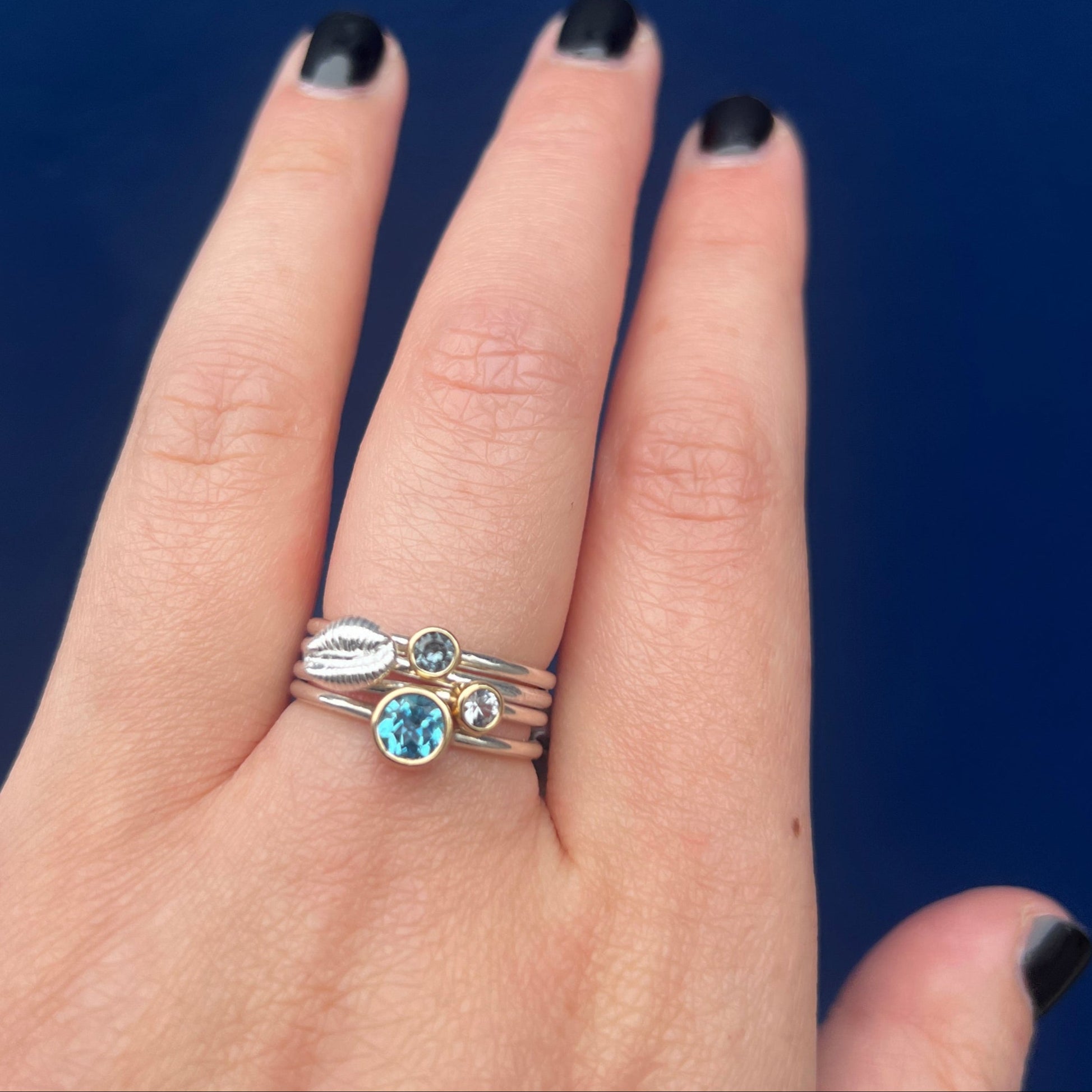 Crafted from recycled sterling silver, our mini groatie buckie stacking ring (inspired by the cowrie shell) brings a splash of seaside charm to the Rockpool collection. It’s the perfect treat for anyone dreaming of ocean breezes and sandy toes. Stack it up with our Nebula and Andromeda gemstone rings, or mix it with other shell designs to create your own playful statement stack.
