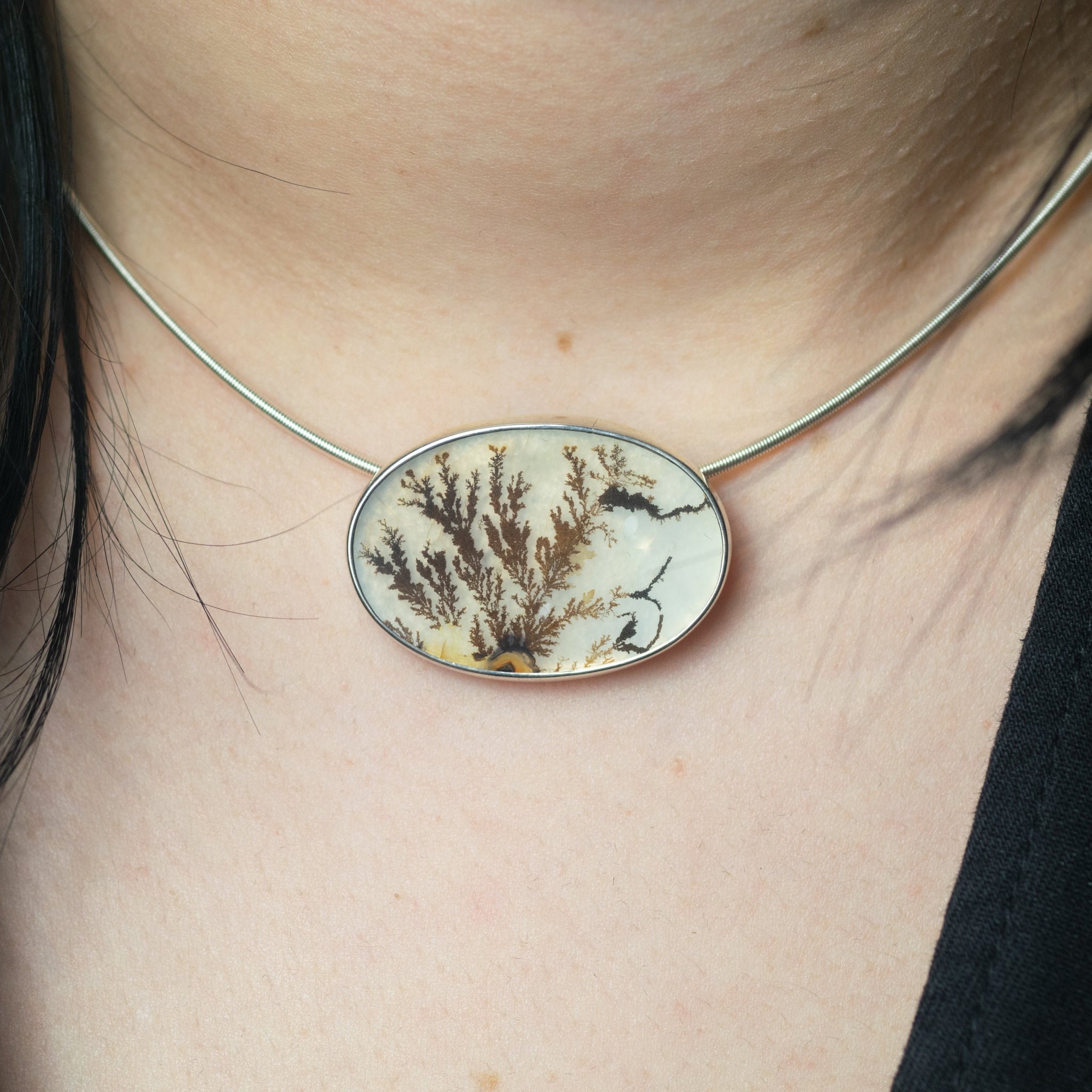Made from recycled solid sterling silver and set with a natural dendritic agate.