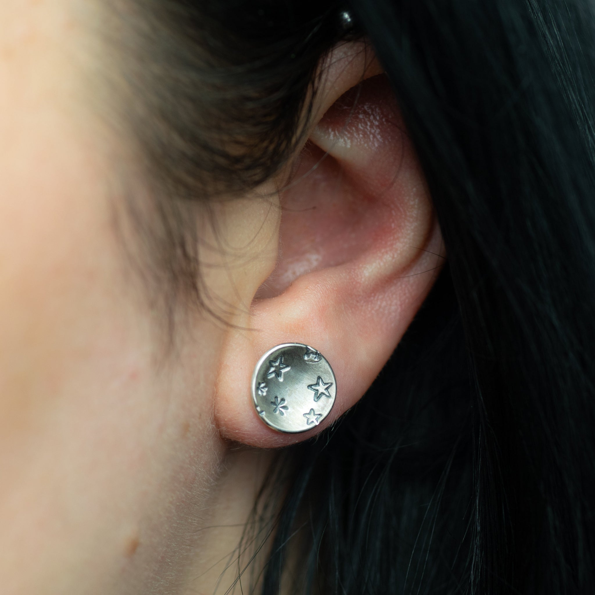 Elegantly crafted silver studs feature a star design, ideal for daily wear.