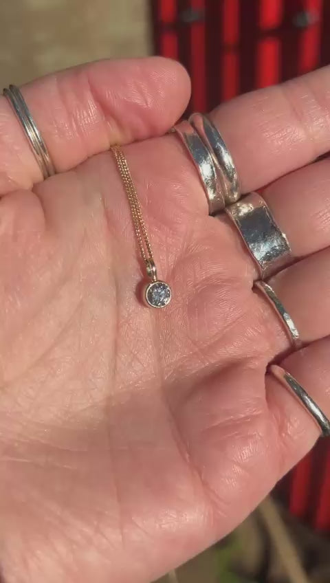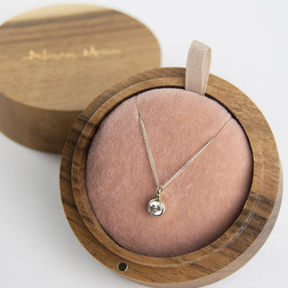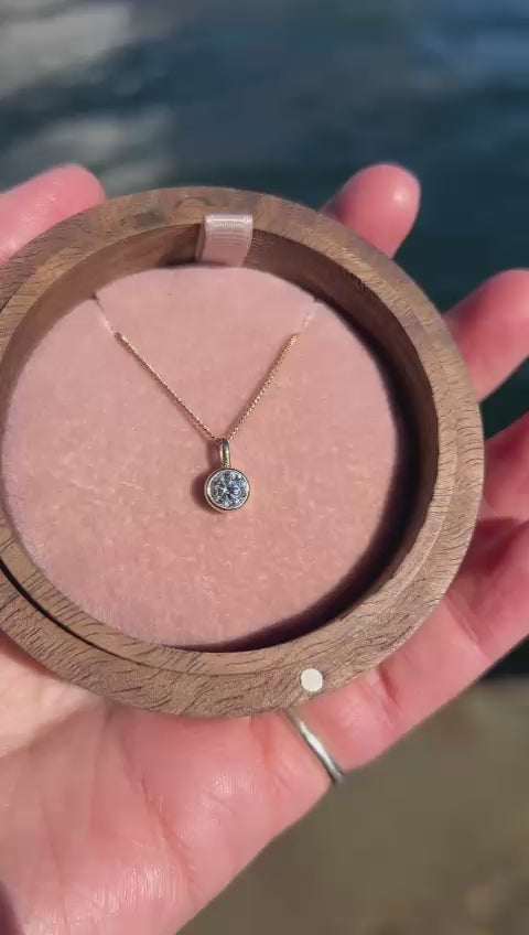 The sparkling lab grown diamond is set in a solid recycled 9ct yellow gold Andromeda pendant, a classic pendant and the perfect gift for the April babies.