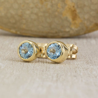 This gorgeous shade of beryl is closely related to the minerals emerald and morganite. The yellow gold bezel settings really show off the colour of the blue gemstone and allow the stones to sparkle. Aquamarine is the birthstone for the month of March and it's name aptly means sea water.