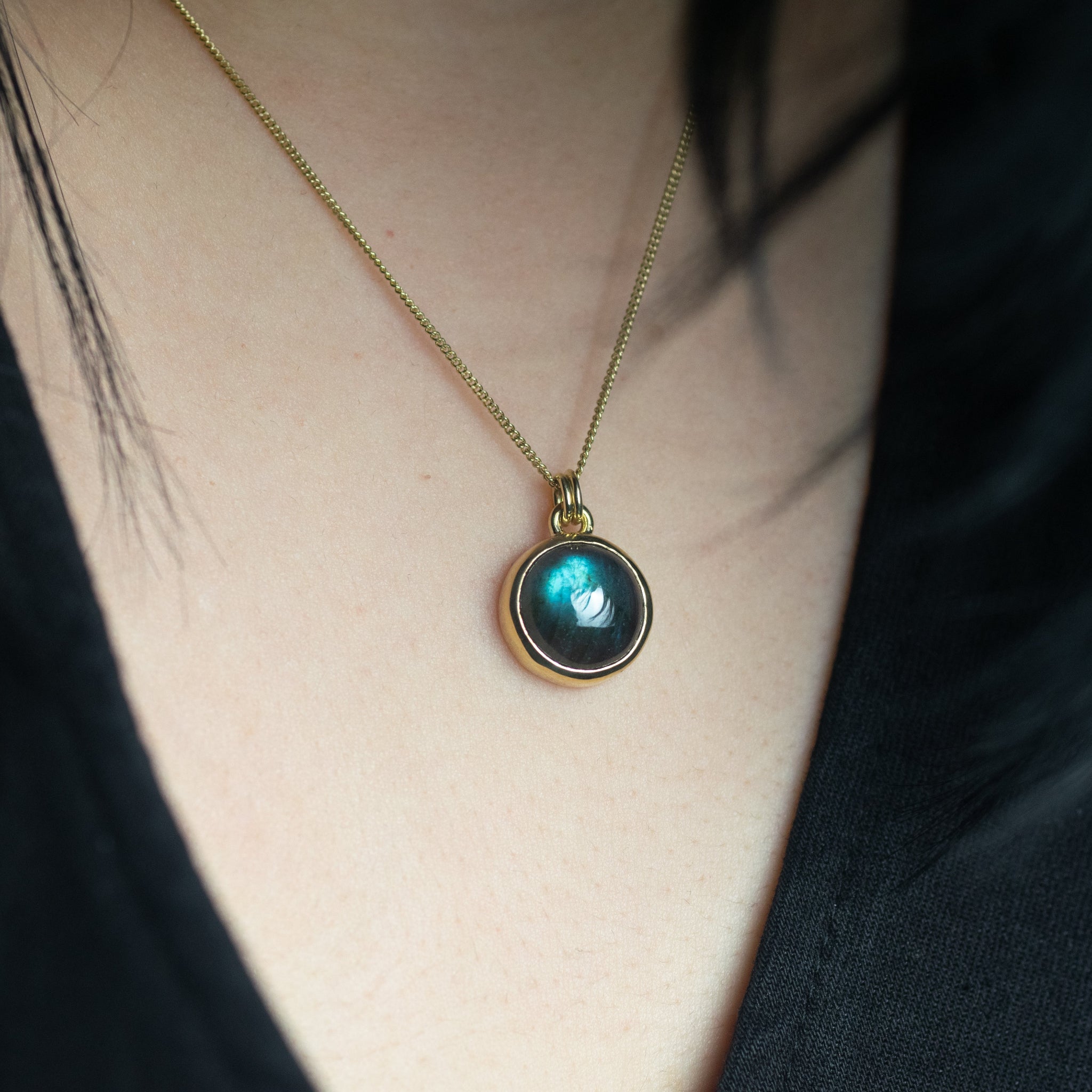 Handmade in our Orkney Islands workshop, the labradorite pendant has a simple yet ethereal feel.