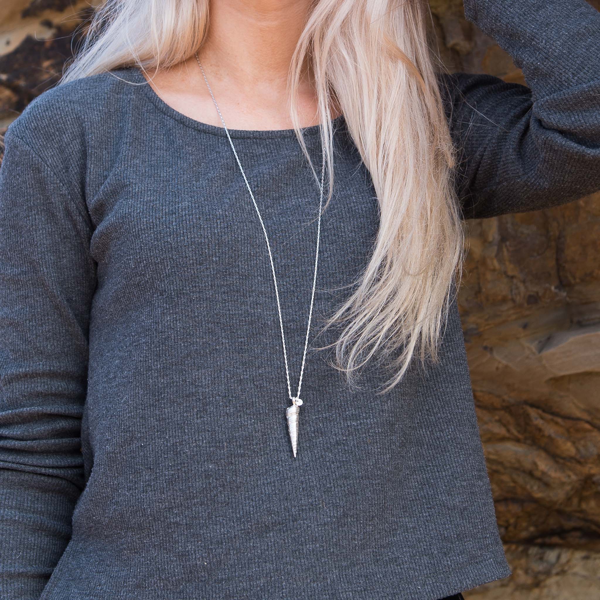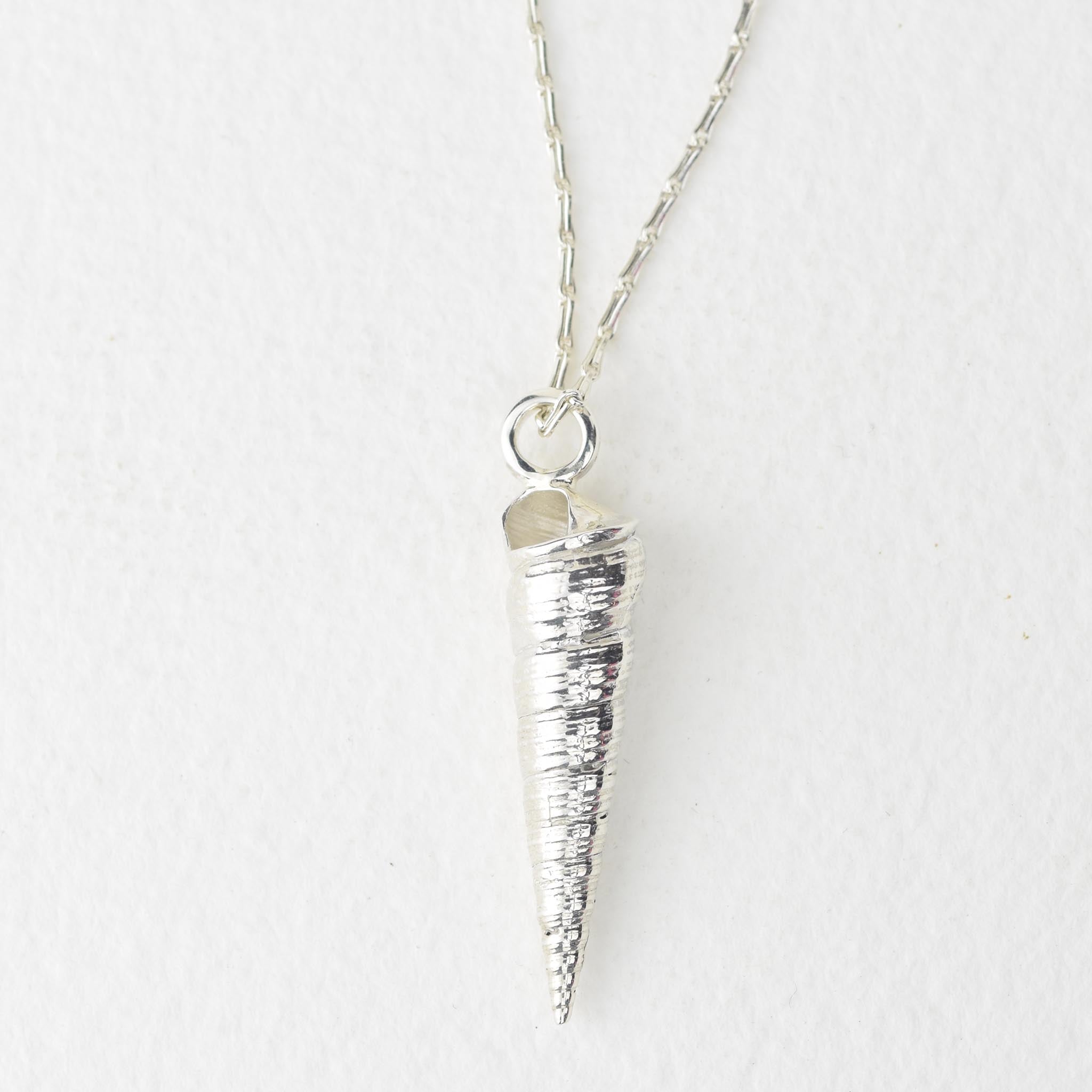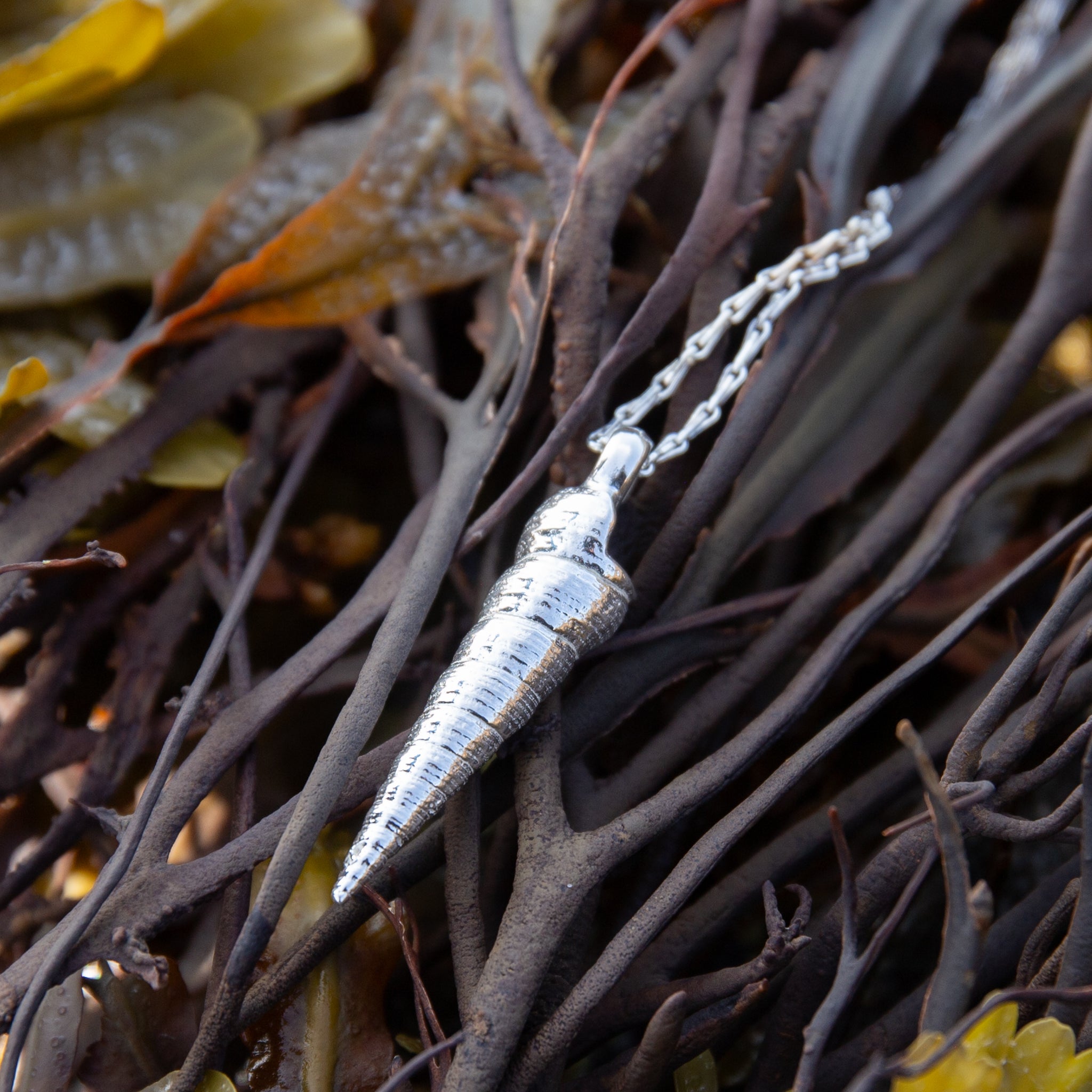 A beautiful silver Tower Shell necklace, crafted from solid sterling silver. The silver is cast in the form of a limpet shell collected from an Orkney beach. A lovely gift for those who crave being close to the sea feel of sand on their skin.
