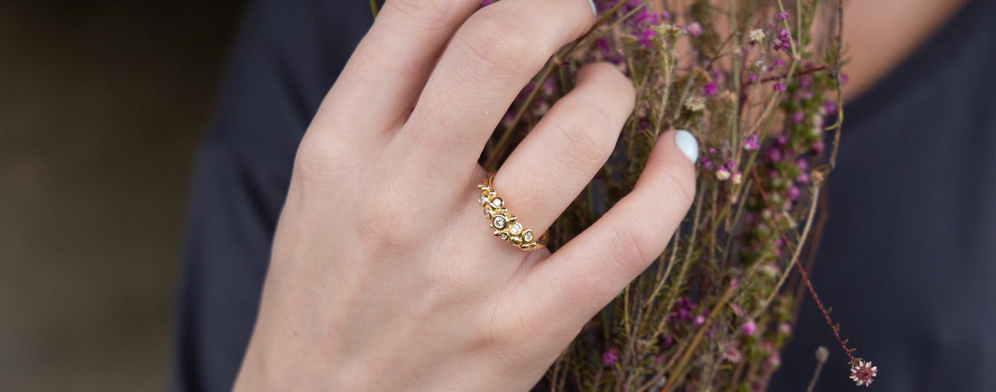 Alison’s walks along the breath-taking beaches close to her Orkney home often provide moments of inspiration that translate naturally into her jewellery designs. For her Pebble collection, Alison has interpreted, in silver and gold, the sea-tumbled stones scattered along the shoreline of the stunning Bay of Skaill.