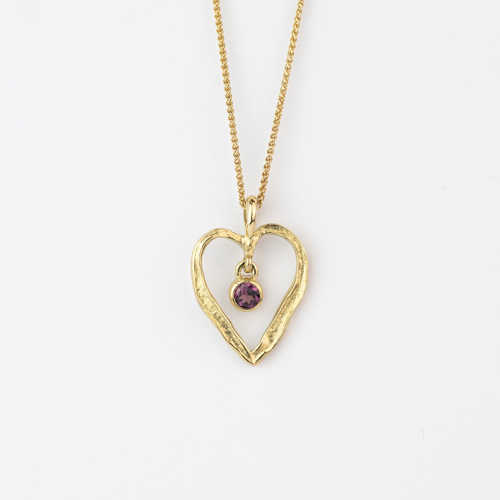 The heart is 21mm tall, the stone 4mm wide. The pendant hangs on a solid 9ct yellow gold chain.