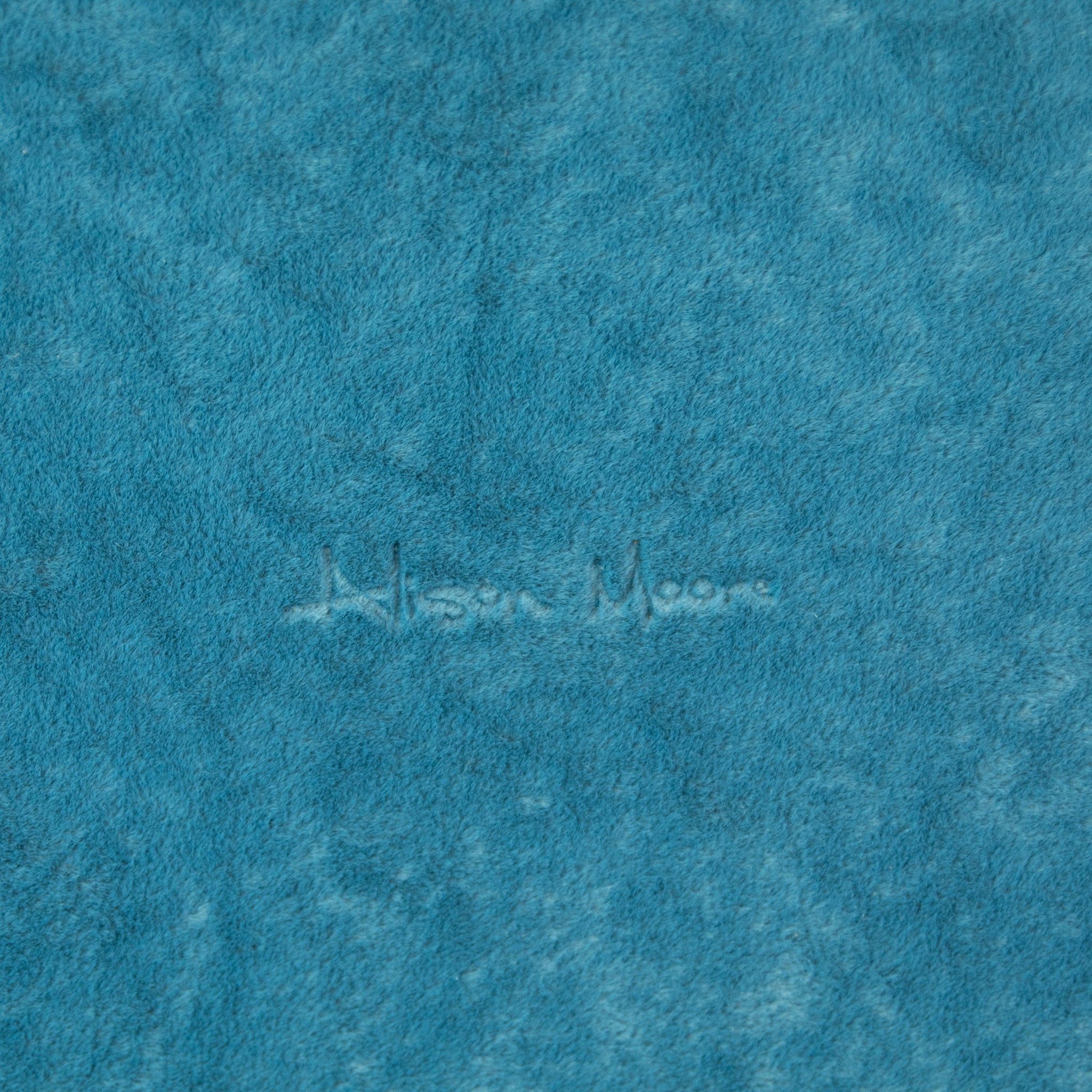 A beautifully handcrafted walnut pendant and earring box, made from smooth, solid walnut and finished with a golden embossed logo. Inside, the flocked blue lining offers a soft, protective place for your jewellery, with an Alison Moore logo on the inside lid adding a gentle, understated detail.