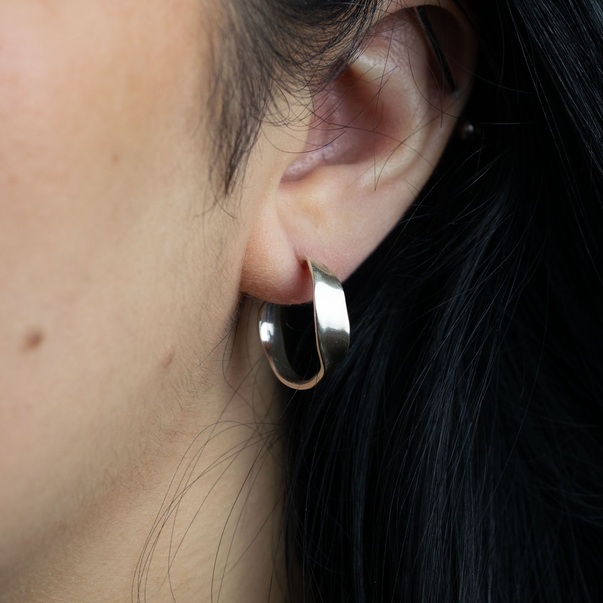 These sterling silver Glimmerings hoop earrings swirl softly around your ear, echoing the playful dance of sunlight on the sandy shallows of the Orkney coast. Crafted from recycled solid sterling silver, they stay secure with silver butterfly backs, adding a touch of eco-friendly sparkle to your look.