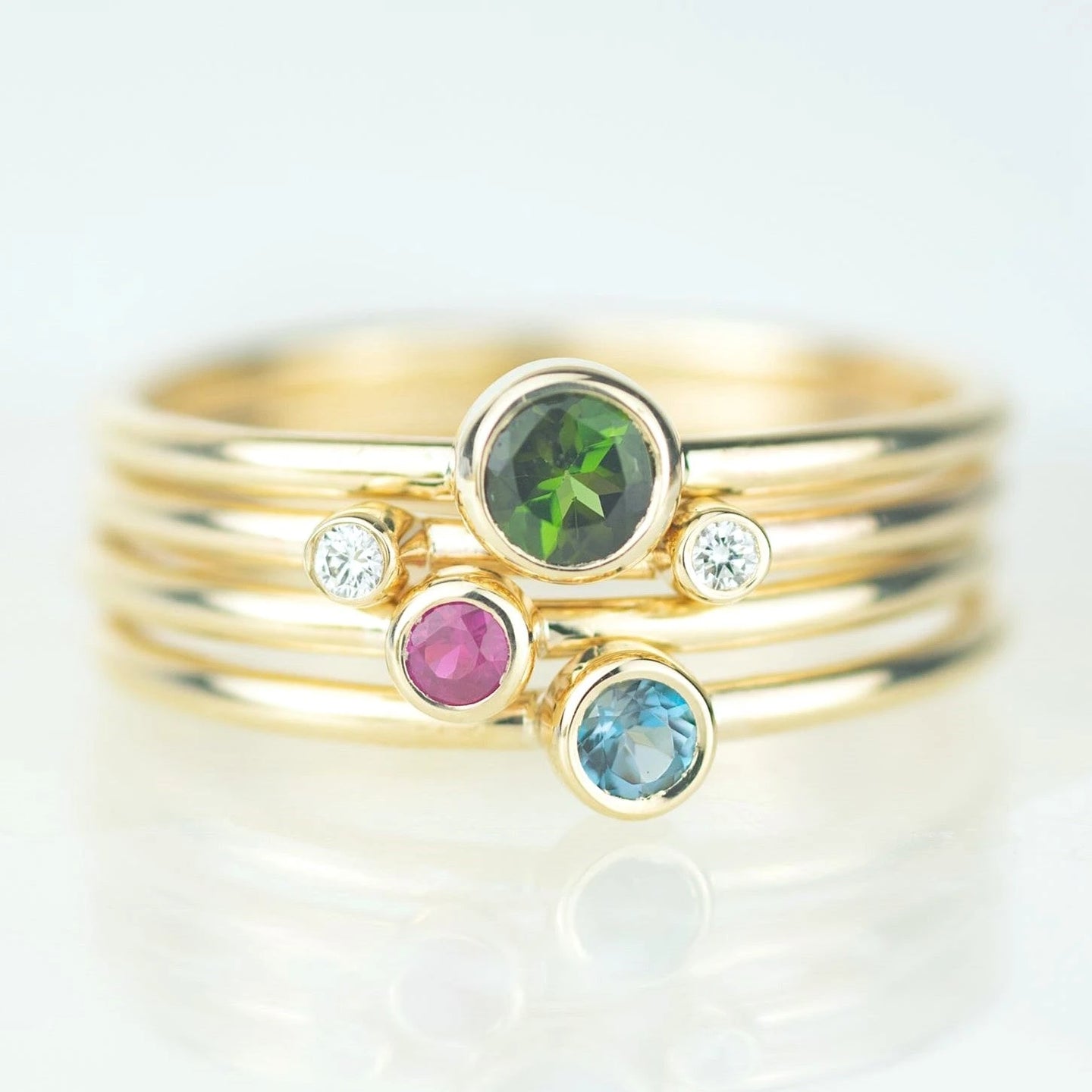 Aquarius - Sapphire, Diamond, Blue Topaz Gold Stacking Ring Set