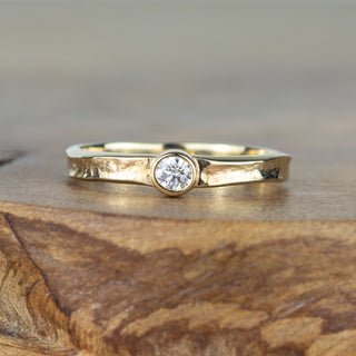 Tess has a 3mm wide band and is set with a 3mm wide faceted gemstone.