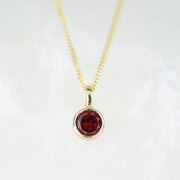 The Garnet Gold Solitaire Pendant is a necklace designed to celebrate the beauty of the rich blood red gemstone. The birthstone of January, garnet is believed to keep a travel safe through their journeys. It is a stone prominent throughout history and when set in yellow gold shows off its regal past.