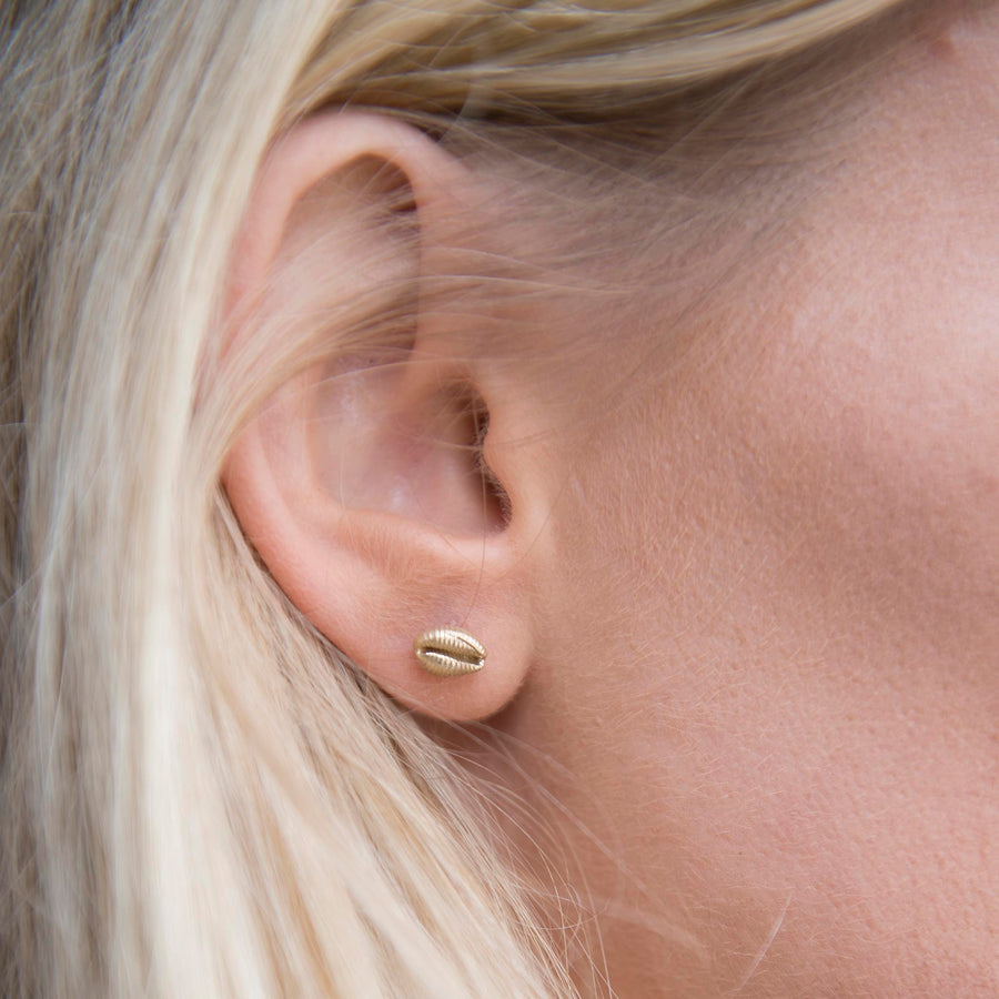 A dainty pair of gold Cowrie Shell Studs, the perfect size for everyday and a wonderful reminder of the shore.