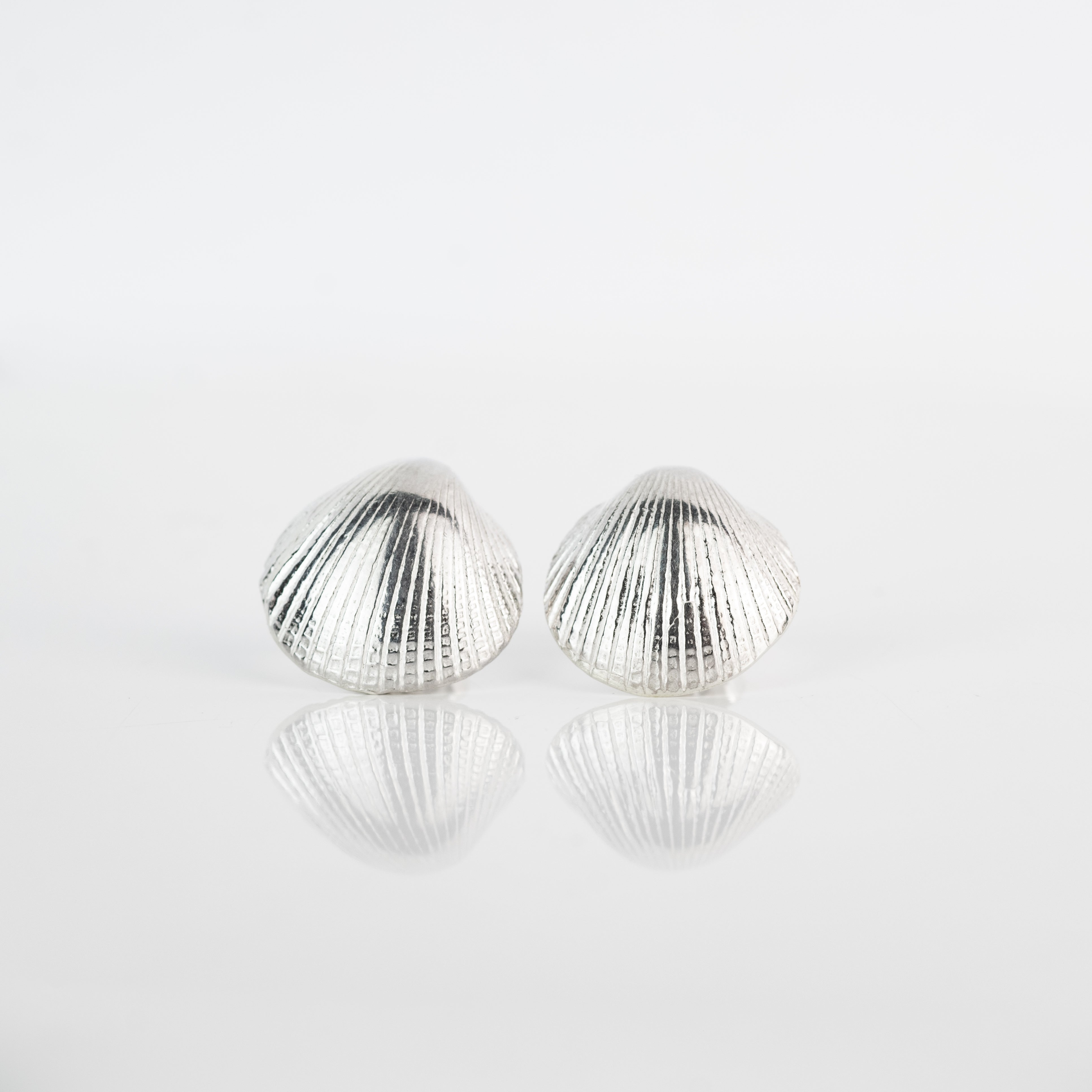 Beautiful solid sterling silver Cockle stud earrings, created using the cast of a cockle shell found on the Orkney shore.