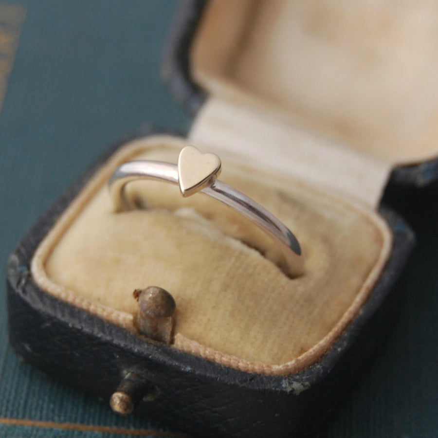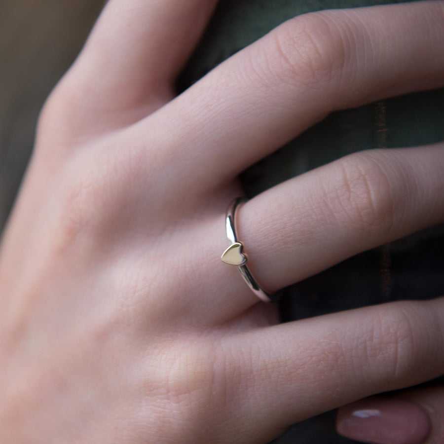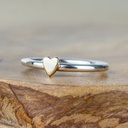 The Lunar Silver And Gold Heart ring features a beautiful mix of sterling silver and solid gold, with a simple heart detail. It can be worn alone or paired with other heart, moon or star rings for a striking appearance.