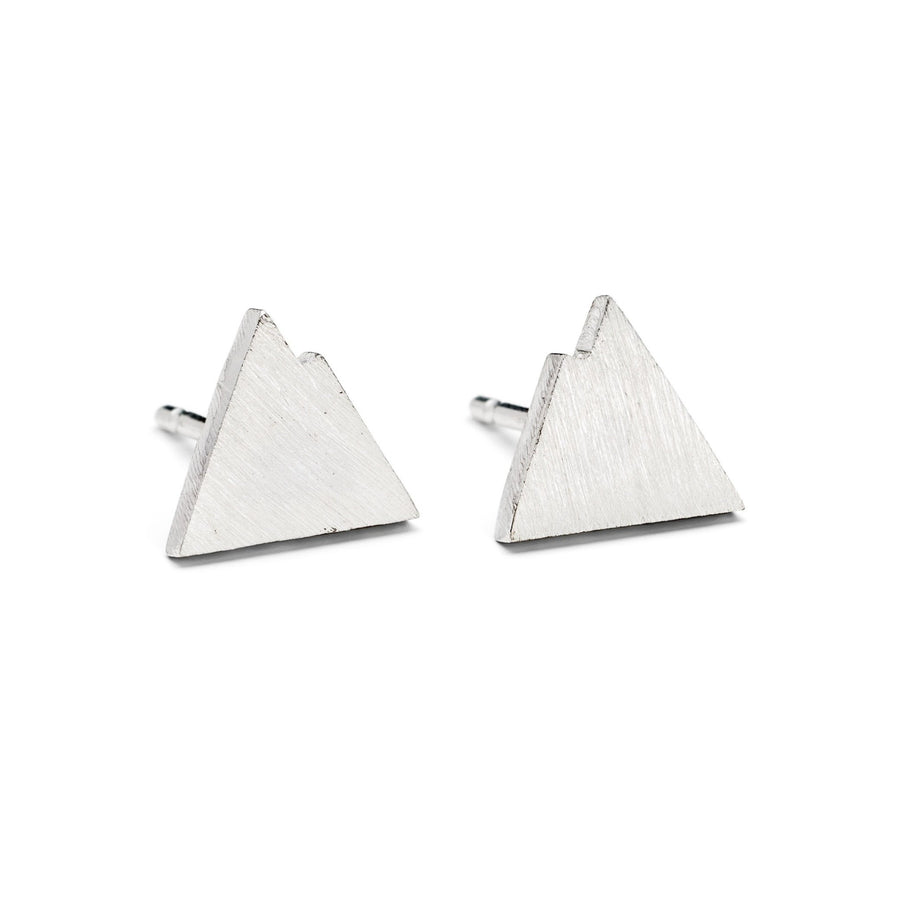 The studs depict mountains crafted in solid sterling silver with a brushed finish.