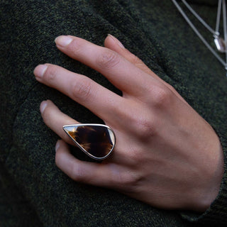 The warm tones of the agate are encased in recycled sterling silver which sits on Alison's signature Storybook textured band. The overall effect is elegant, organic and timeless.