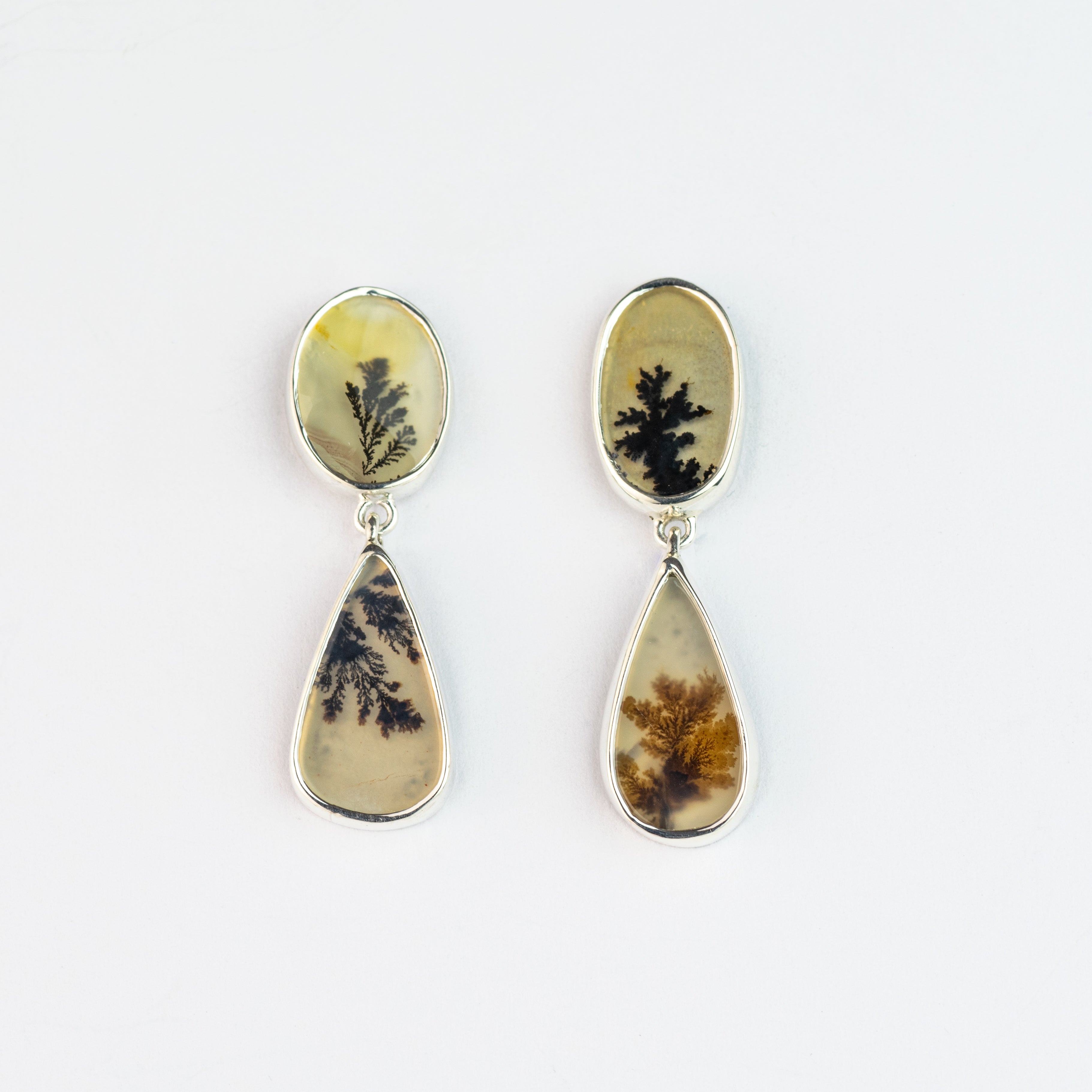 Made from recycled sterling silver and set with natural dendritic agate gemstones.