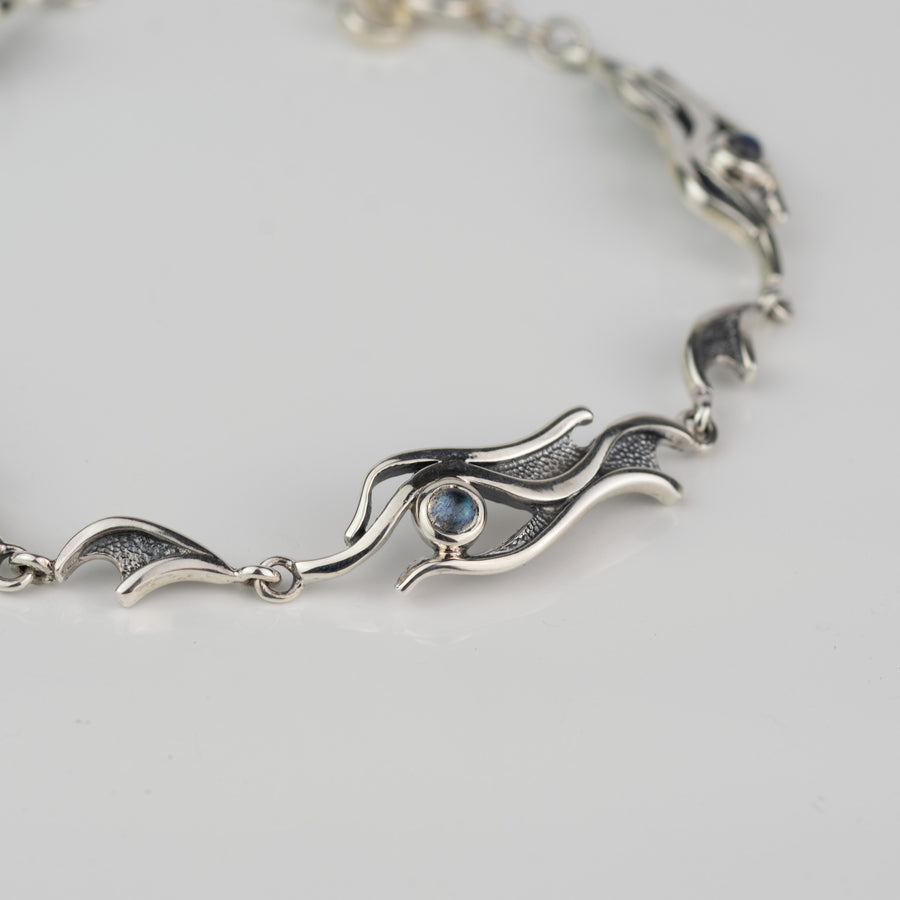 The bracelet is made from solid recycled sterling silver with genuine labradorite gemstones.