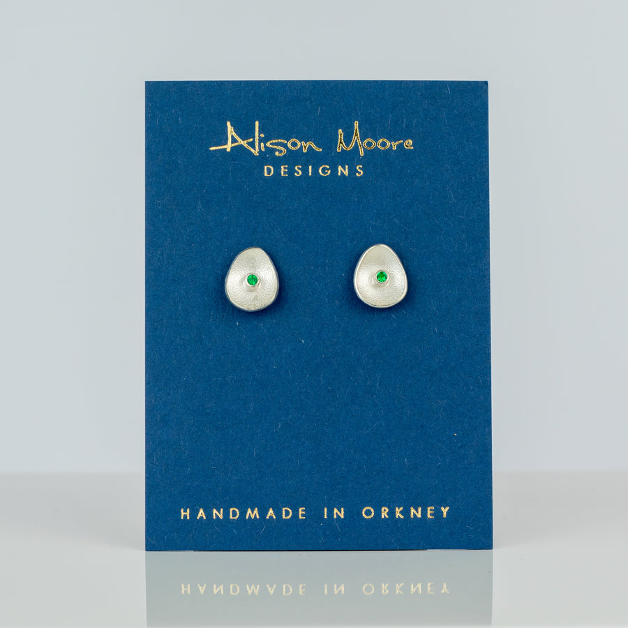 Set with sparkling green emeralds, the birthstone of May, the Sea Button earrings are perfect for wearing everyday. Delicate in appearance but powerful in purpose.