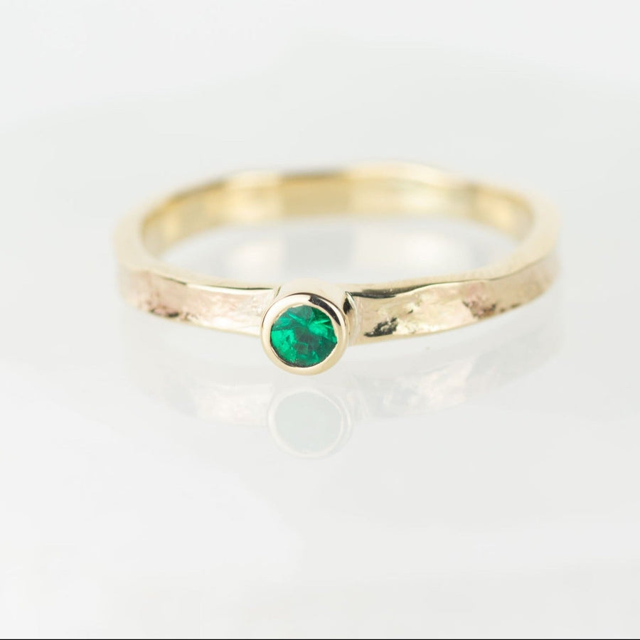 Made from recycled solid 9ct yellow gold and fully hallmarked. Set with a genuine 3mm round faceted emerald.